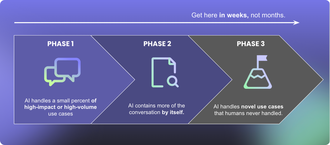 Typically, teams start deploying AI agents for low-risk tasks and gradually expand, but the true goal is reaching entirely new use cases: ones that were never possible before due to limited human capacity.
