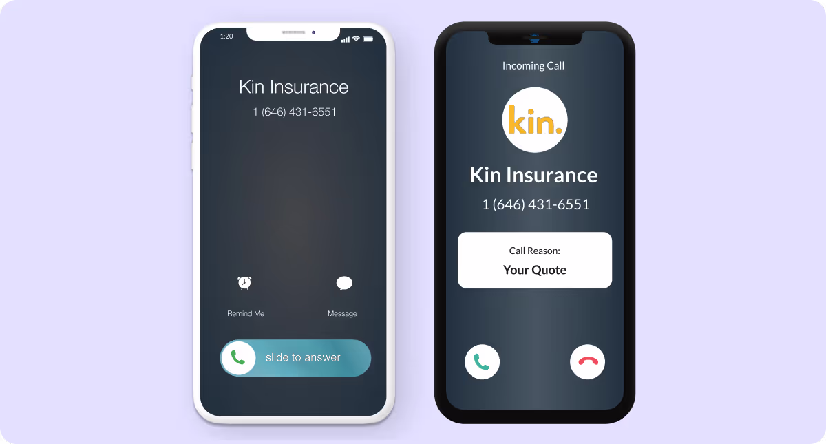 Homeowners insurance provider, Kin Insurance, sees 36% lift in ‘engaged customers’ and 8% lift in bind rate by using Regal’s branded cell phone caller ID to reach their prospects.