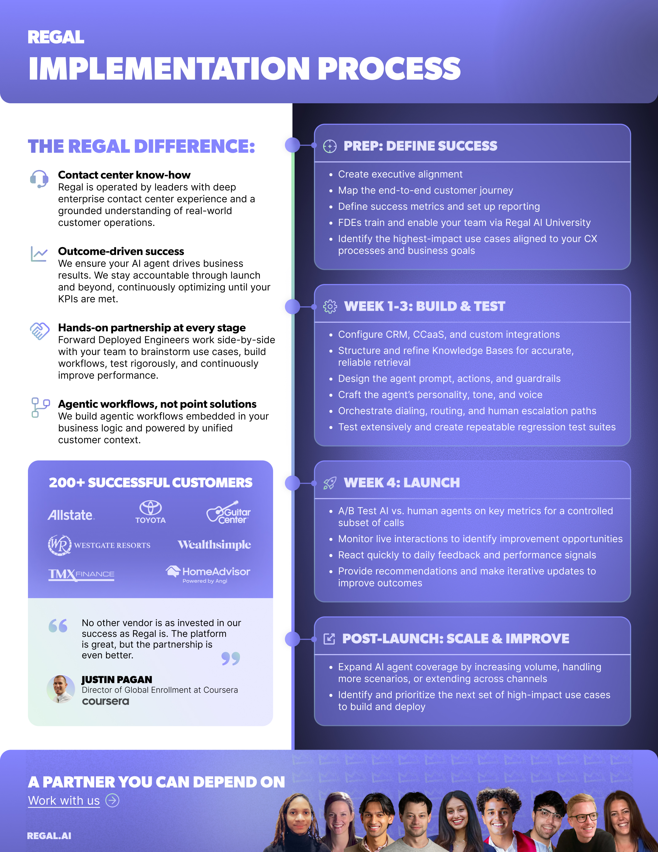 What to expect from the Regal implementation process from kickoff to go-live and beyond, and how our deep contact center expertise informs the way we build agentic workflows for enterprise scale and reliability.