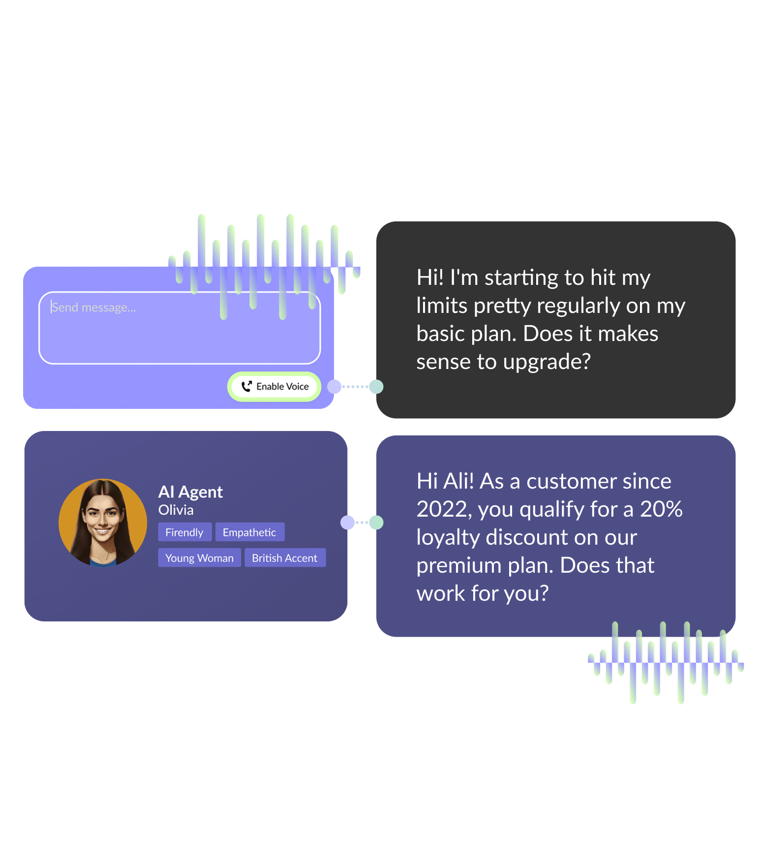 Transform your in-app customer experiences with AI agents that feel human. Enable voice calls on your website with one click, no phone call required.